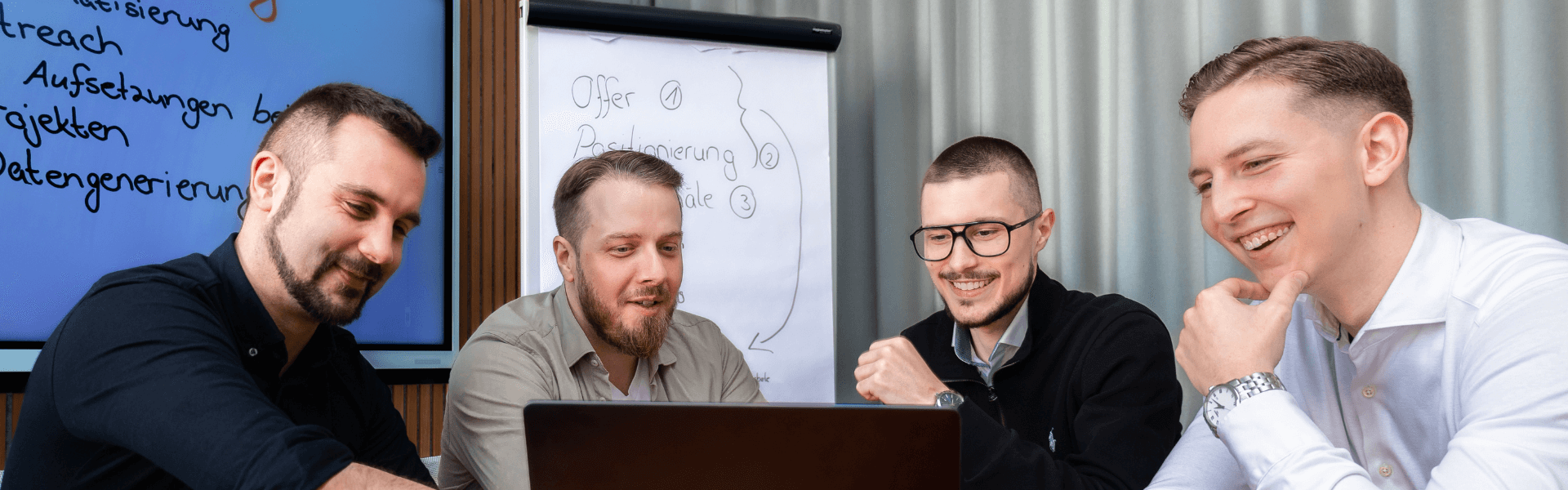 Wir haben aktuell ein junges & hungriges Team aus 6 Leuten (Stand August. 2025) und suchen nach Menschen, die wachsen wollen. Das Ziel: Wir wollen der größte Anbieter für KI-Vertriebsprozesse am deutschsprachigen Markt werden.